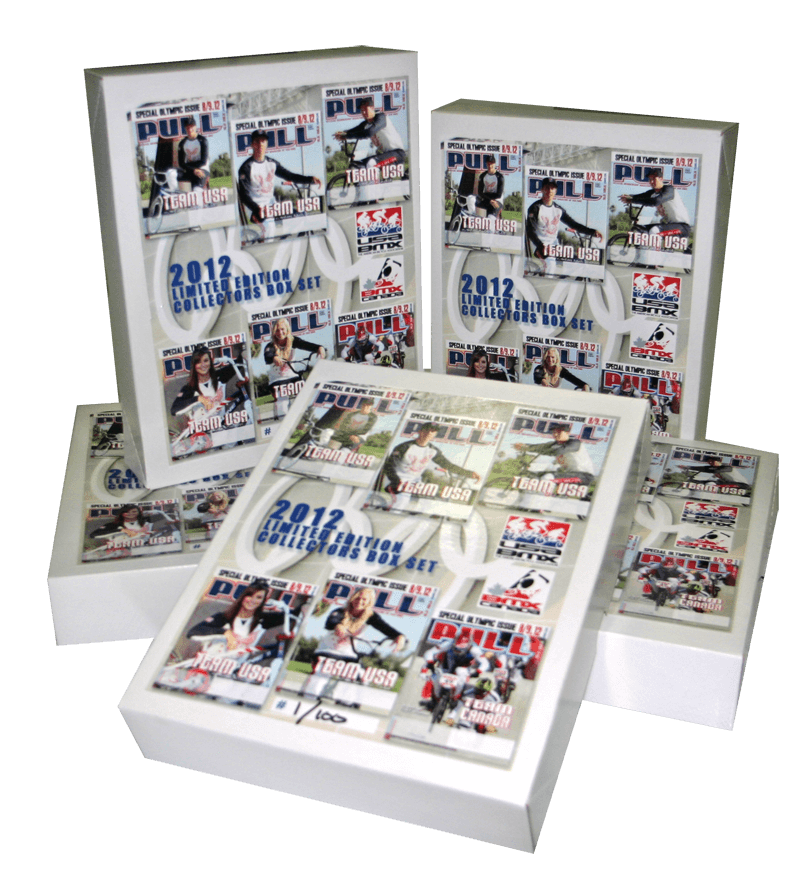 SPECIAL OFFER: USA BMX Racewear has just received 100 box-sets of PULL magazine's special Olympic Edition. Each set comes with all six Olympic magazines, each with a different Olympian on the cover. Each box set is hand-numbered (1 thru 10