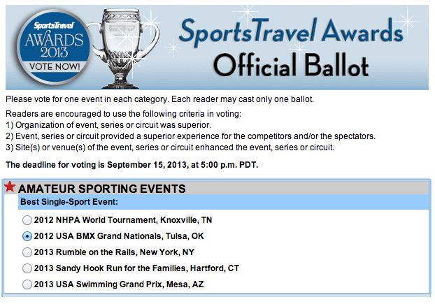 Want to help USA BMX gain more national recognition from the leading SportsTravel magazine?