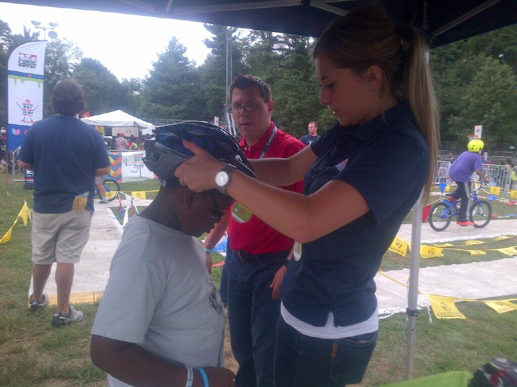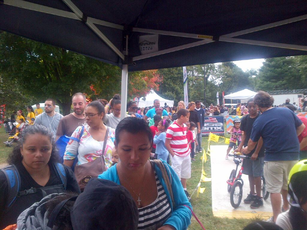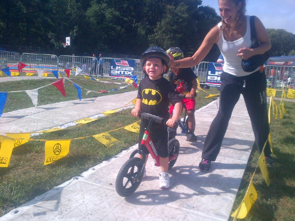 The day arrived - and our USA BMX staffers were in place at the New York park where Nickelodeon expected tens of thousands of kids to show up to partake in some form of activity. USA BMX was in good company - with fellow athletic partners such as the U.S. Tennis Association, USA Paralympics, the NFL, NBA and Boys & Girls Clubs (just to name a few). Kids and parents showe dup in masse, and the Redline and Strider bikes that we had for demo bikes had kids lined up for a block to have fun and ride the mock-up BMX course. It was a Disney-like thrill ride, where kids would finish their ride and run right back to the end of the line to do it again.