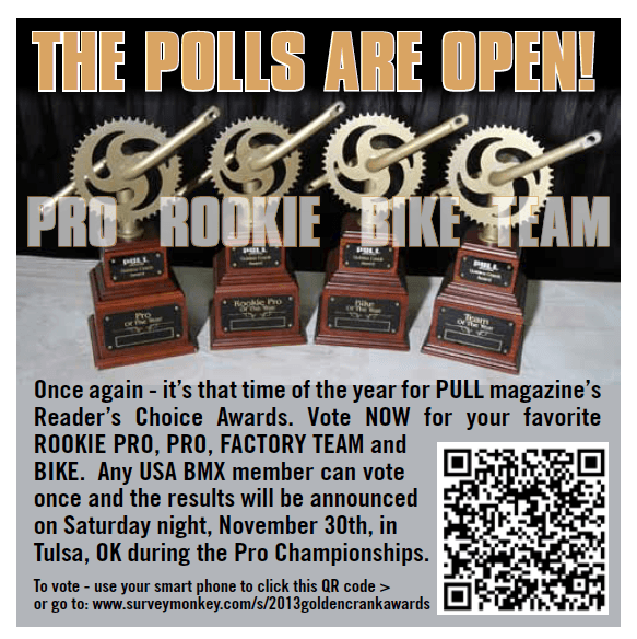Once again - it’s that time of the year for PULL magazine’s Reader’s Choice Awards. Vote NOW for your favorite ROOKIE PRO, PRO, FACTORY TEAM and BIKE.