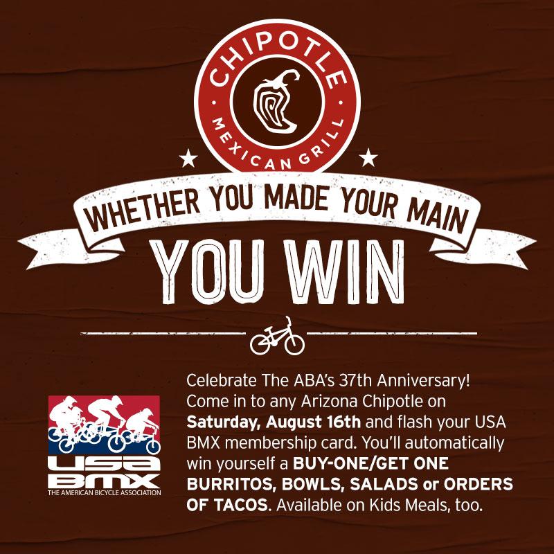 The American Bicycle Association - aka USA BMX, is turning 37! And to celebrate the occasion here in Arizona, Chipotle is giving all of our members in Arizona a really tasty gift.