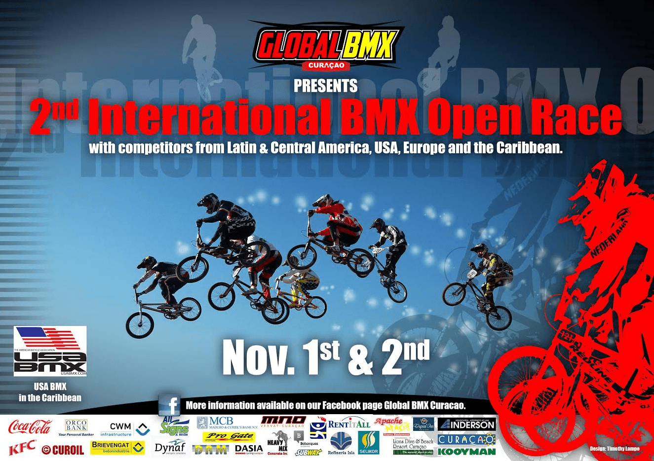Global BMX Curacao in cooperation with BMX Americas, is pleased to invite all US ABMX members to the 2nd annual International Championship of “Global Open BMX” to be held from October 31 to November 2, 2014.